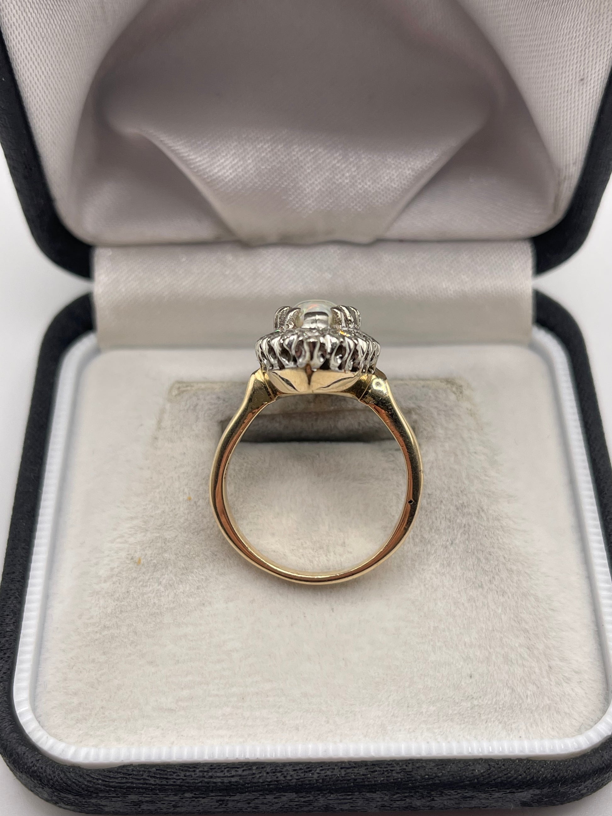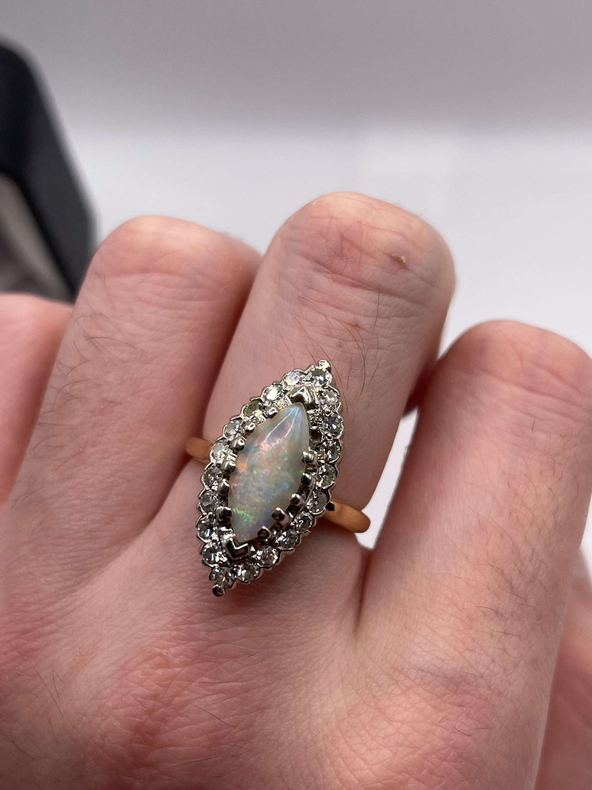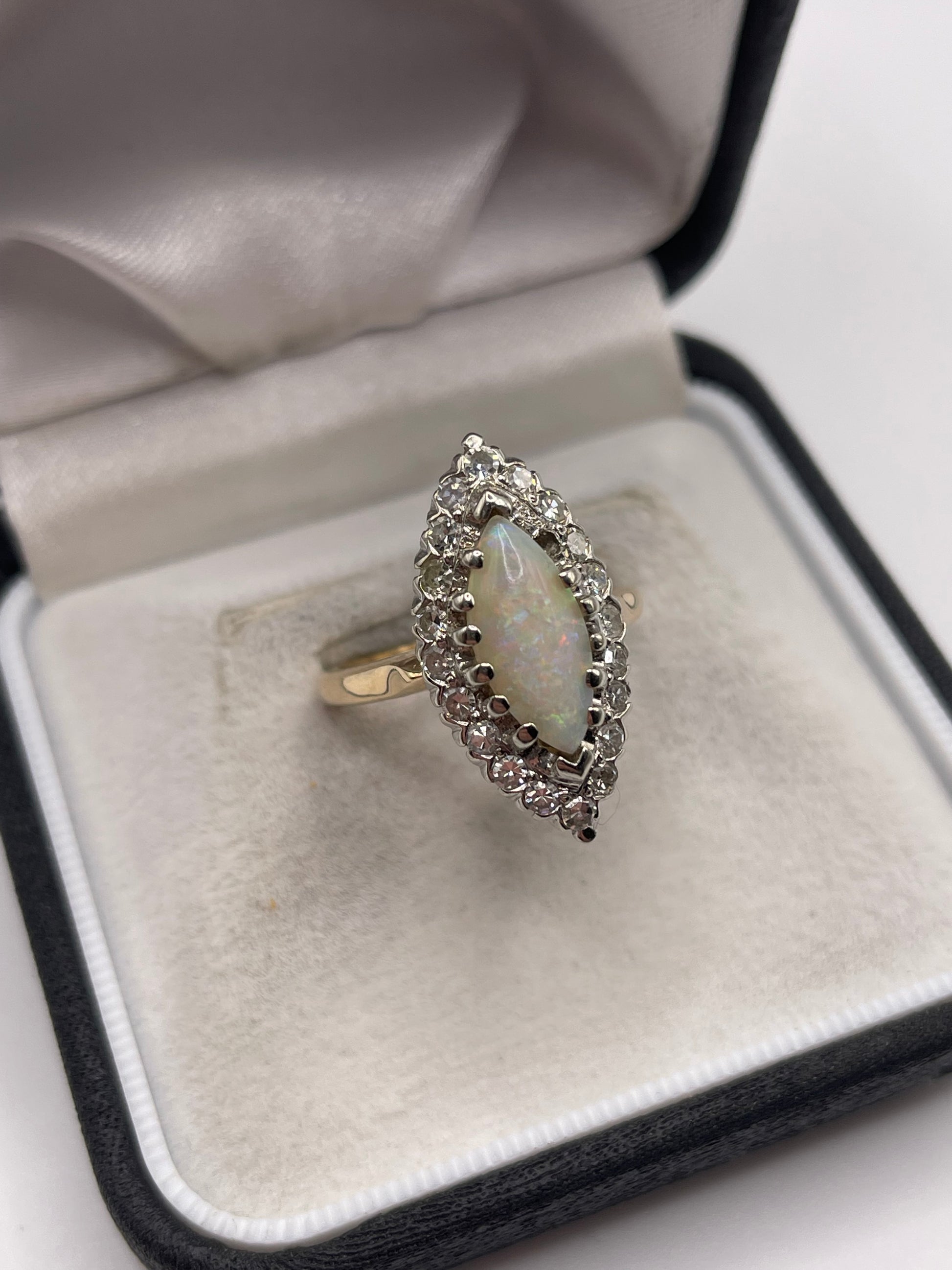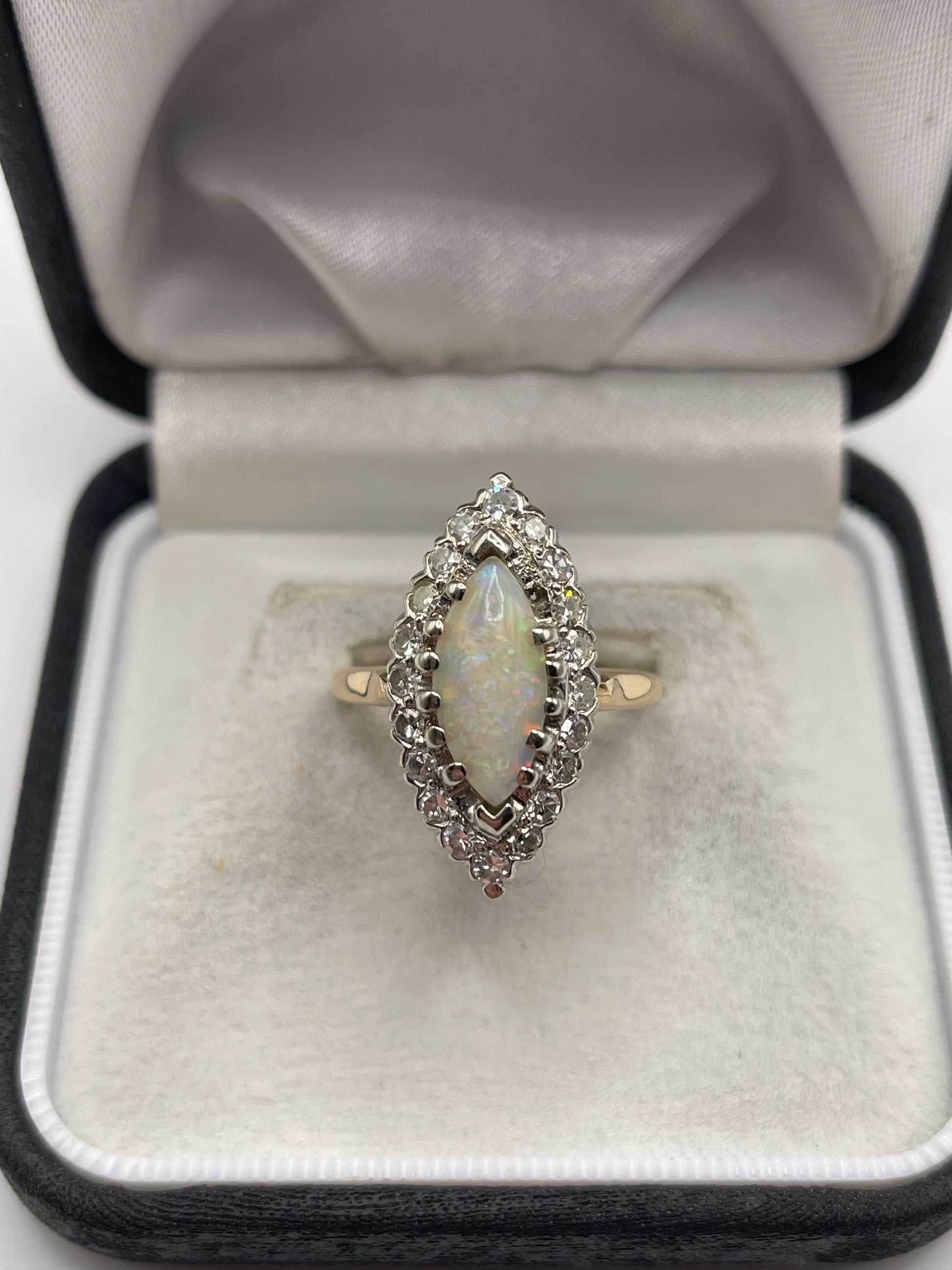 14ct gold opal and diamond navette ring
