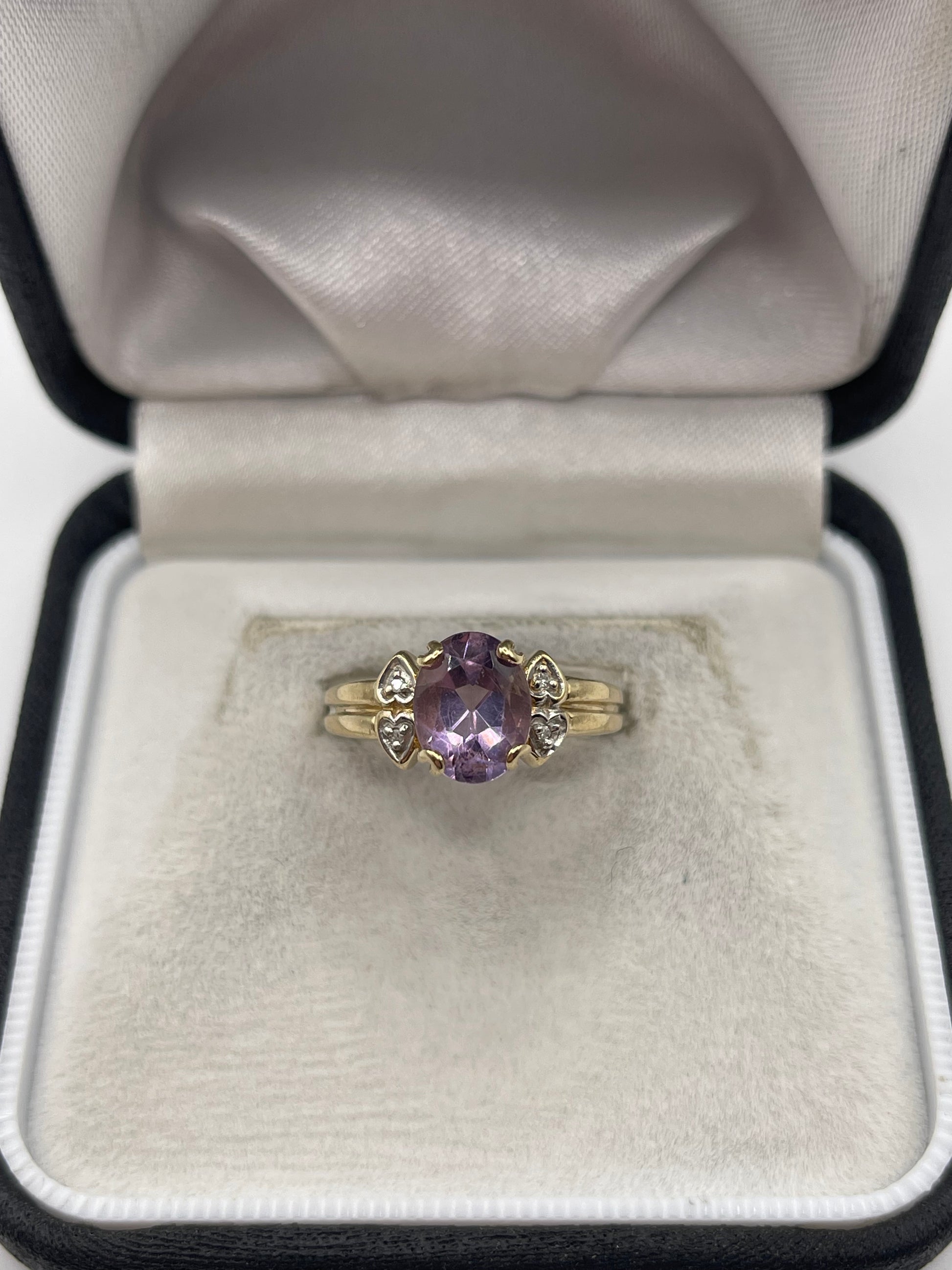 9ct gold amethyst and diamond ring