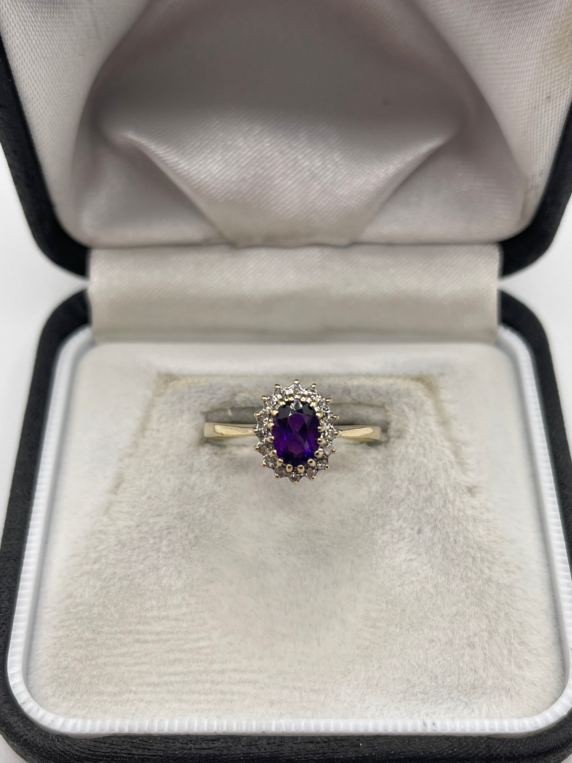 9ct gold amethyst and diamond ring