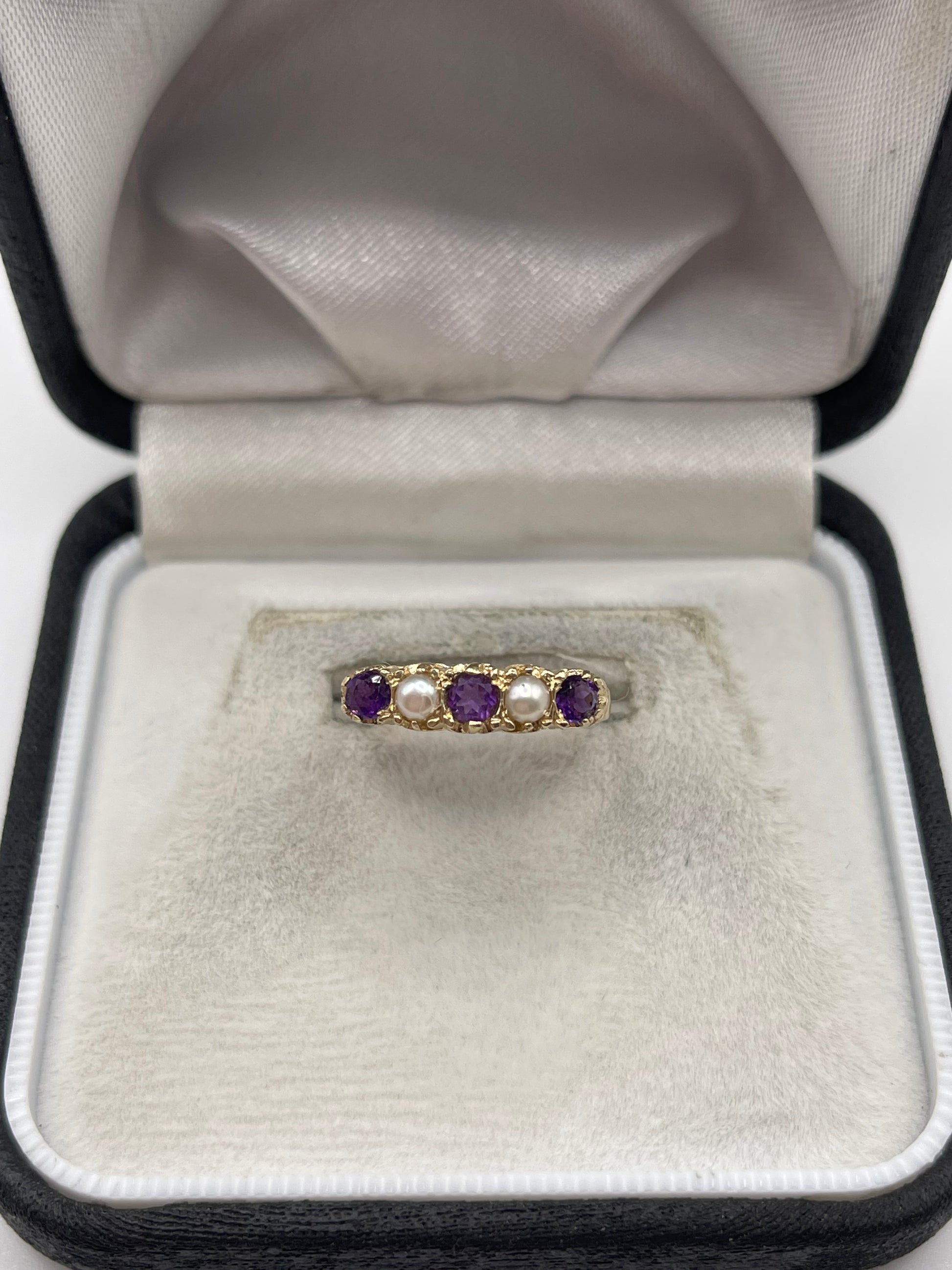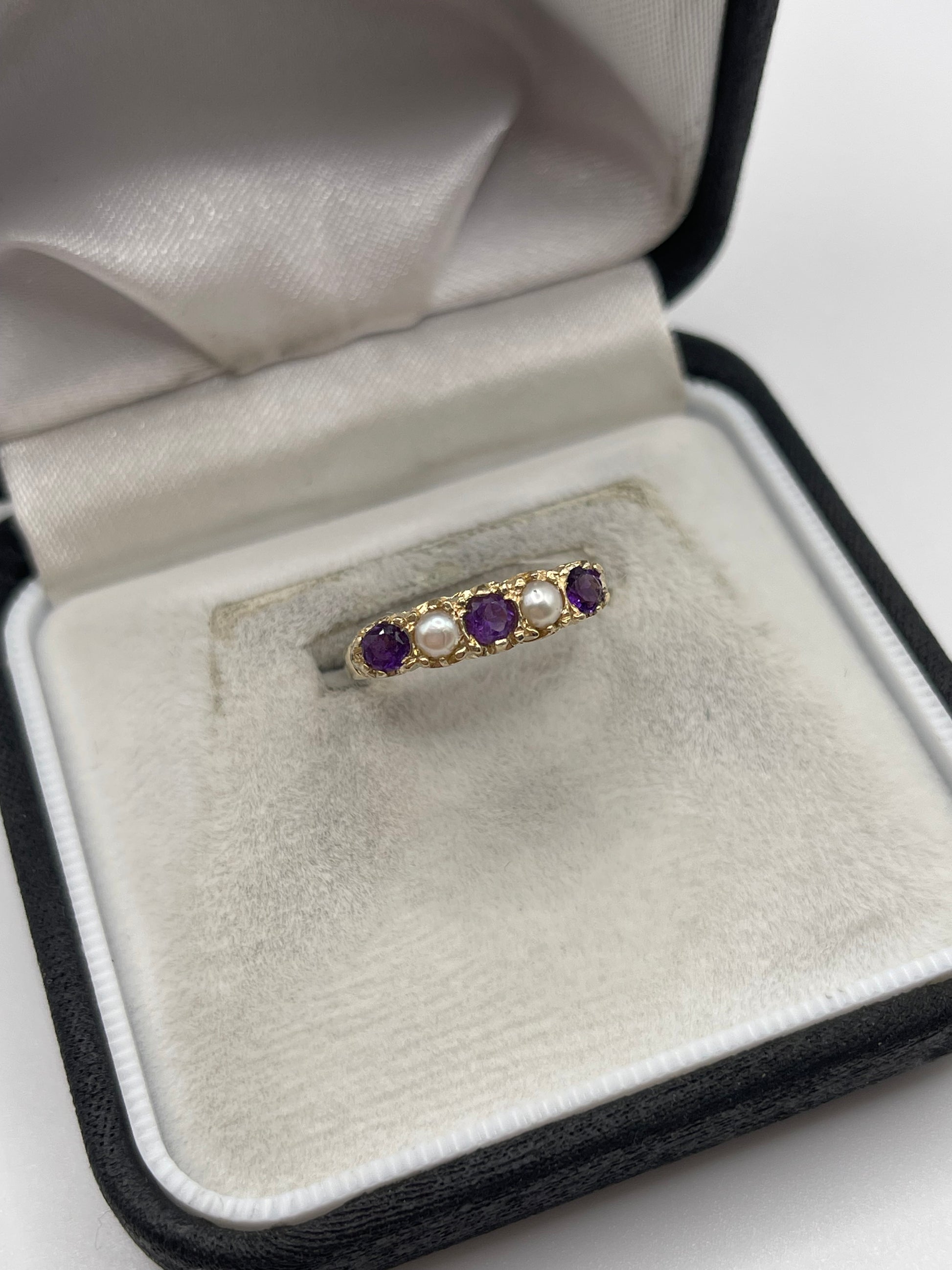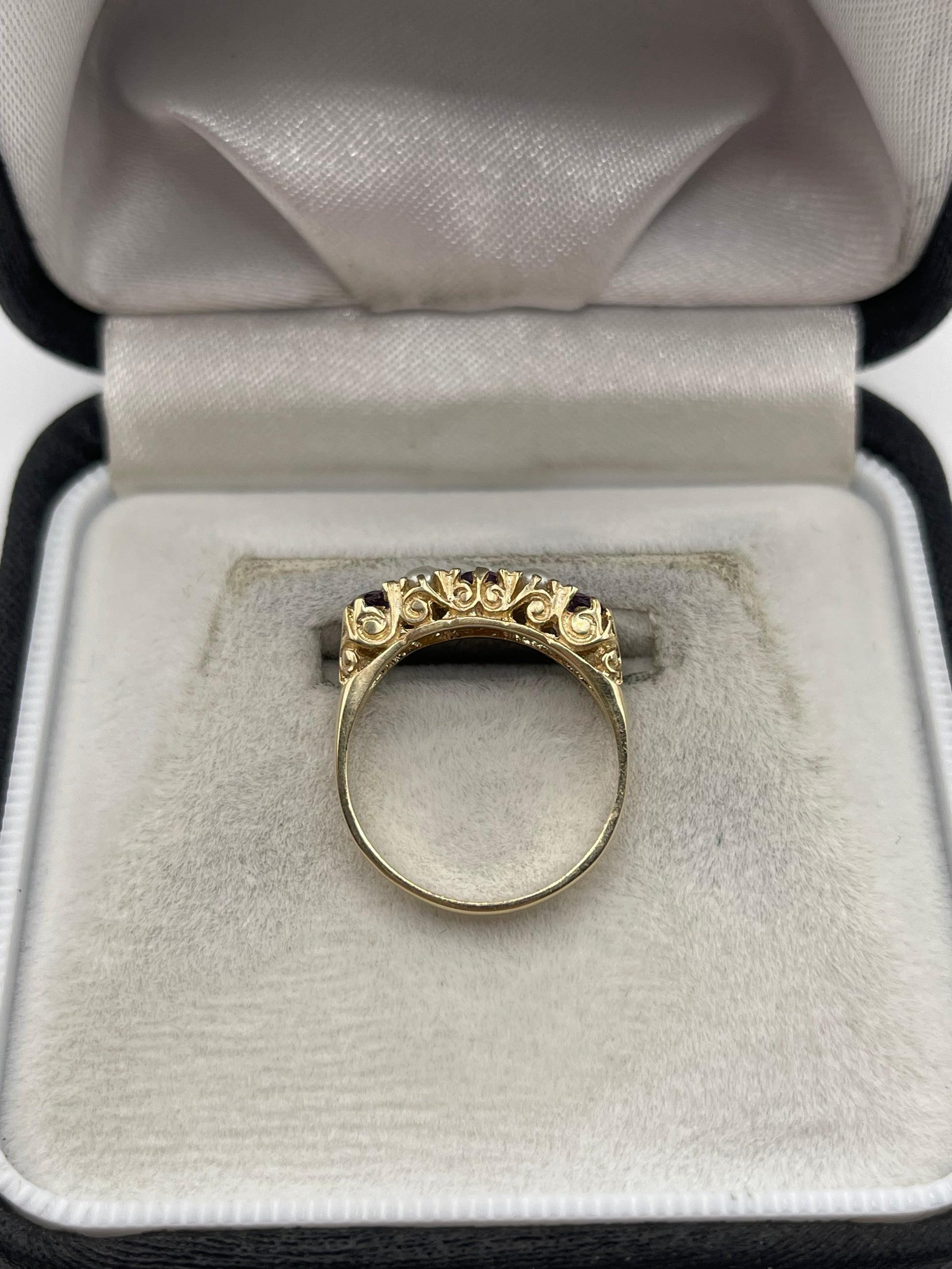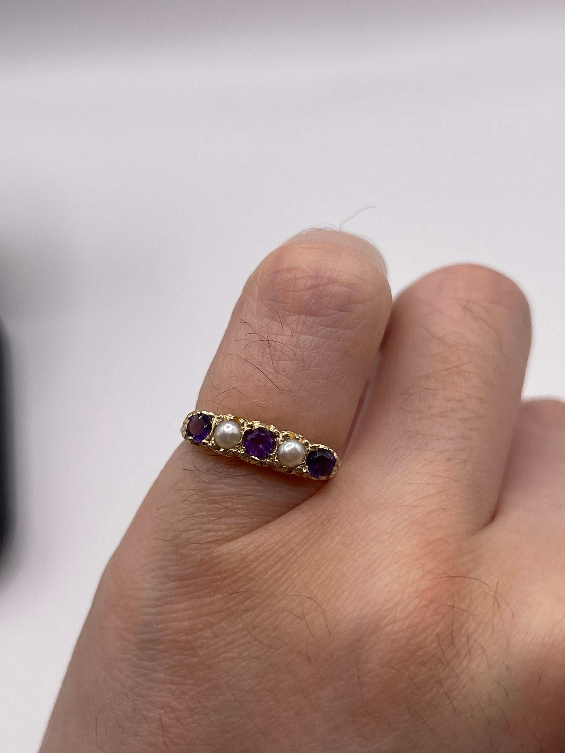 9ct gold amethyst and pearl ring