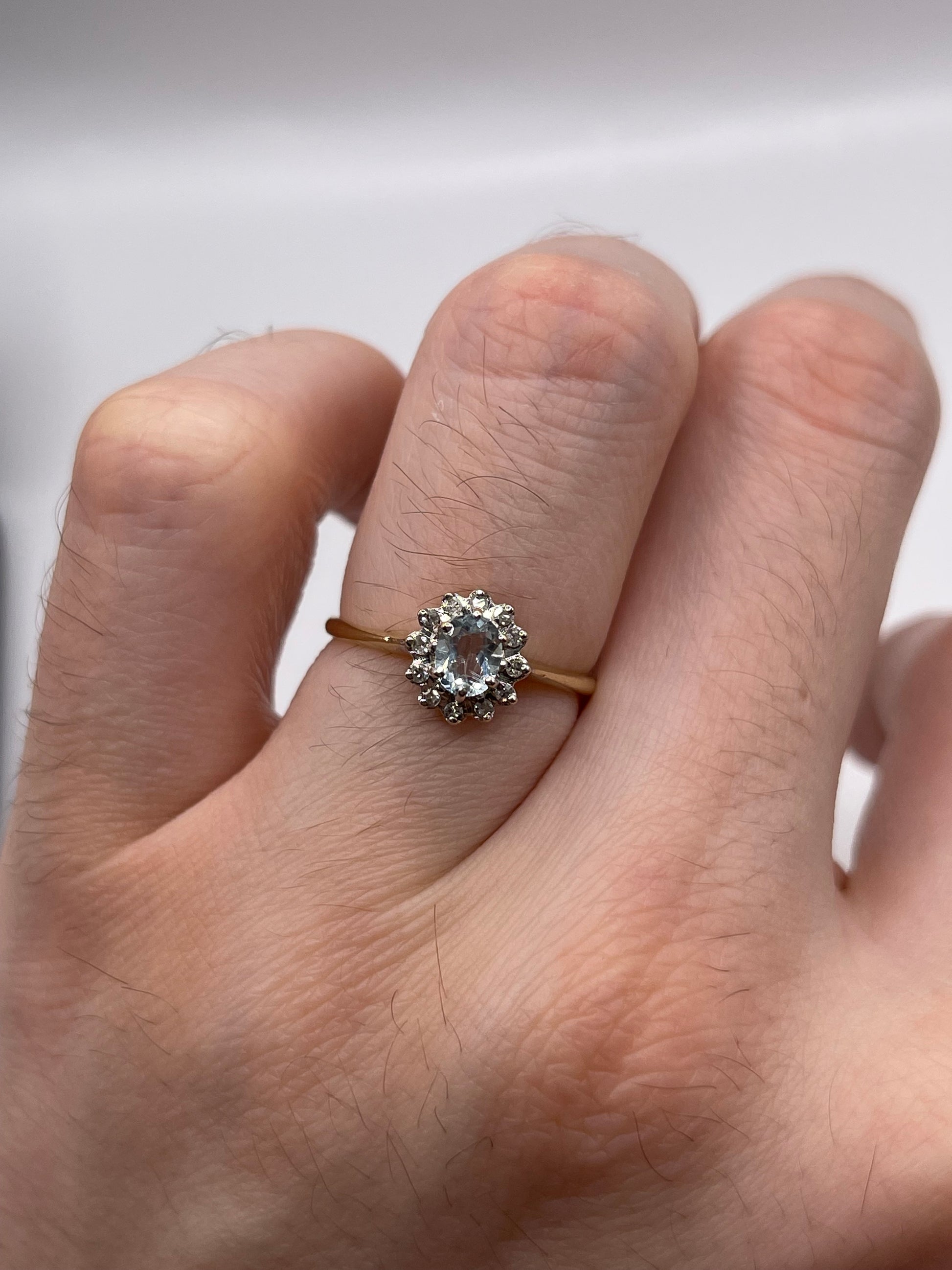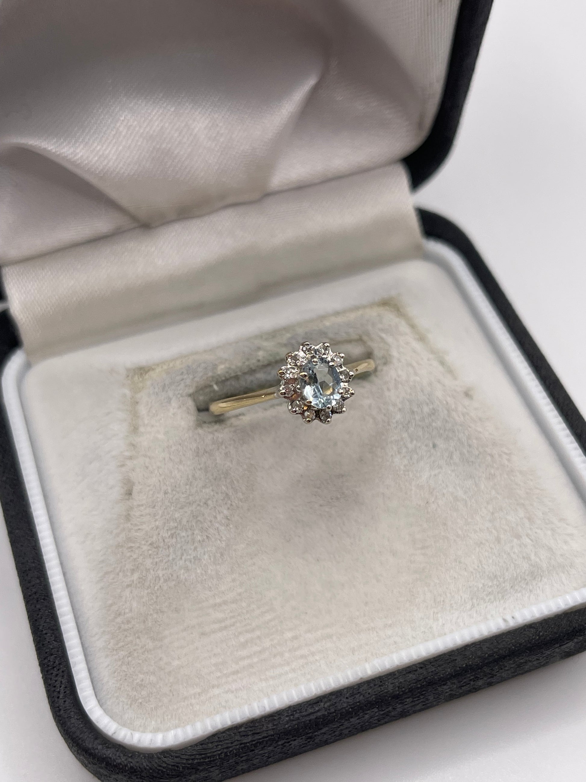9ct gold aquamarine and diamond ring