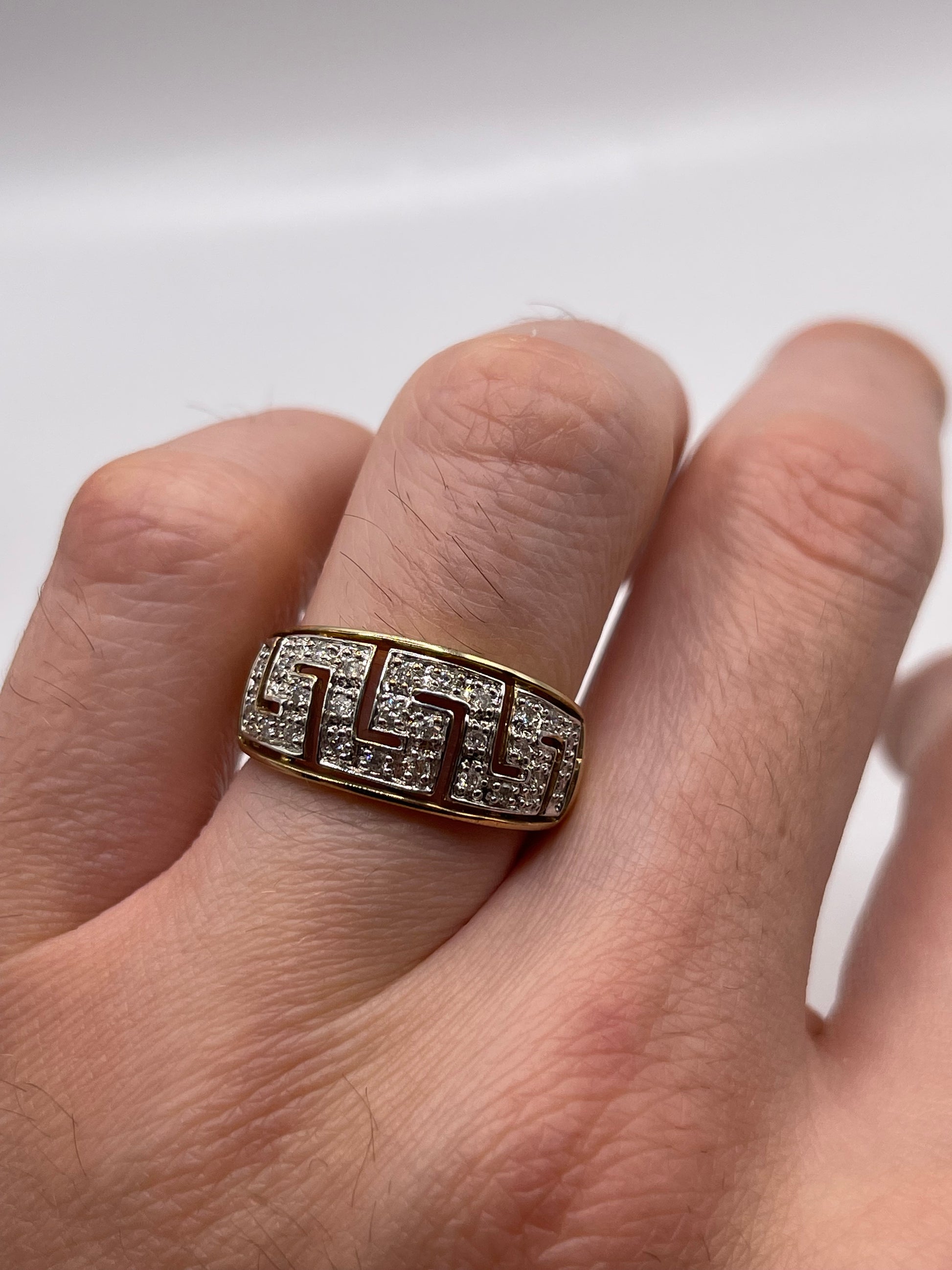 9ct gold diamond Greek key ring