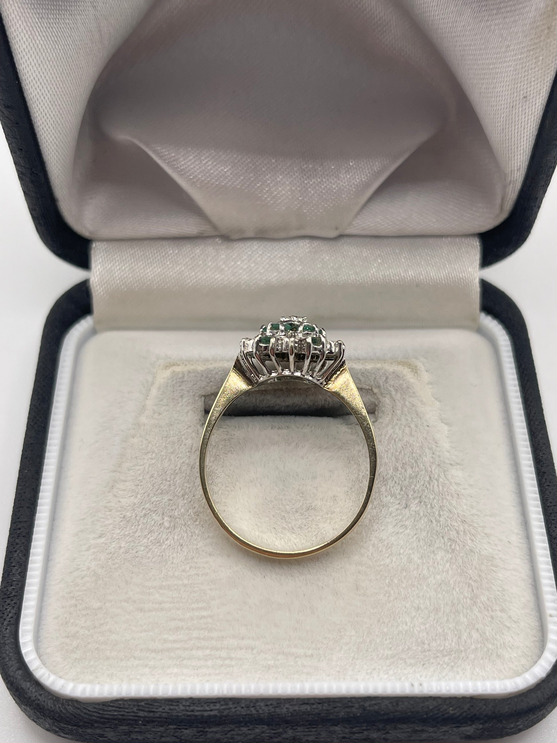 9ct gold emerald and diamond cluster ring
