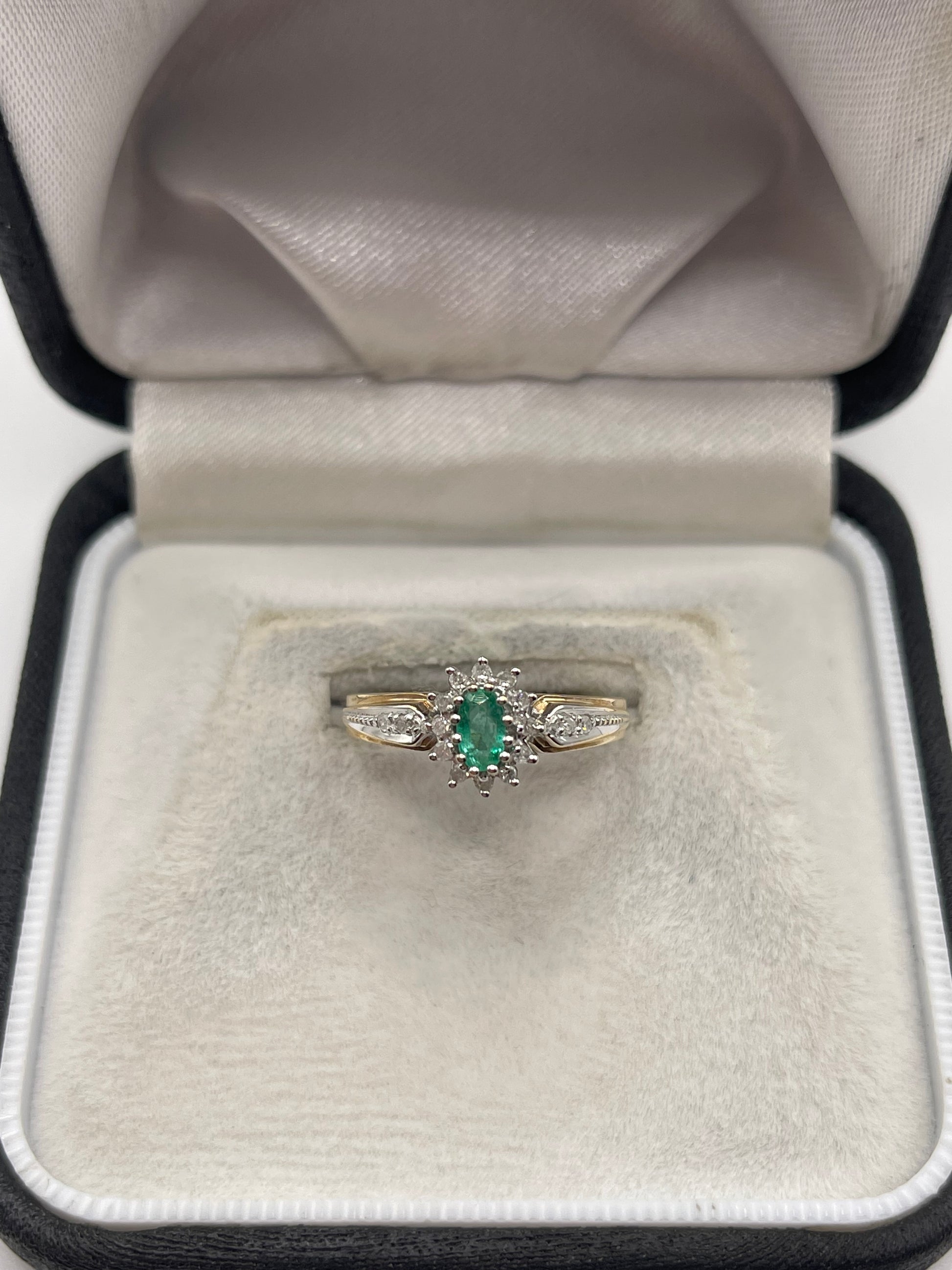 9ct gold emerald and diamond ring