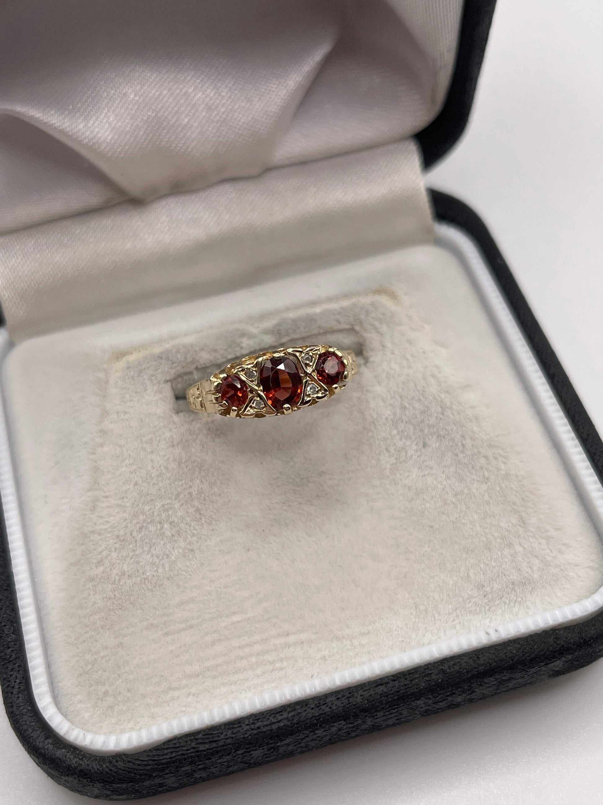 9ct gold garnet and diamond ring