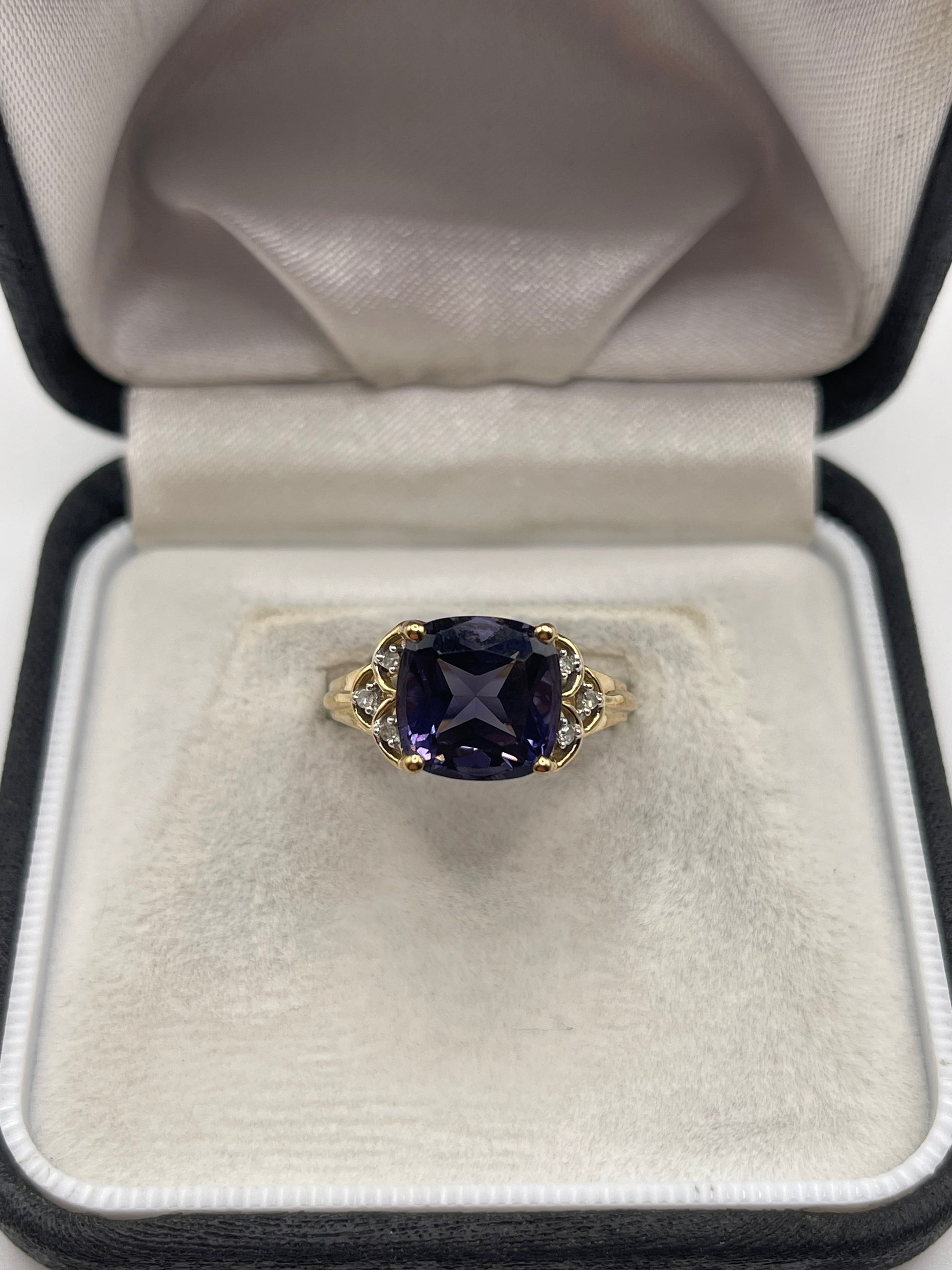 9ct gold iolite and diamond ring