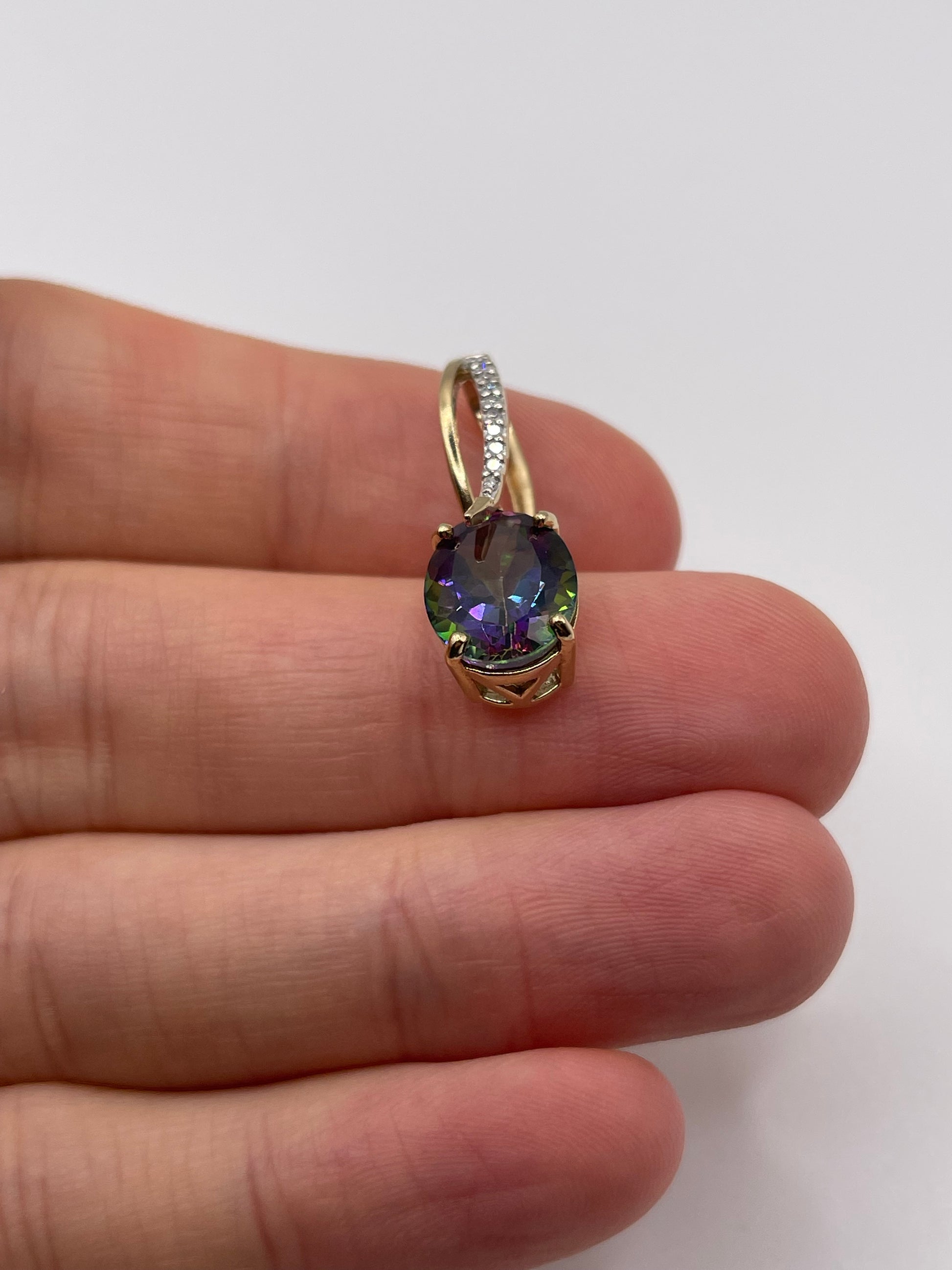9ct gold mystic topaz and diamond pendant