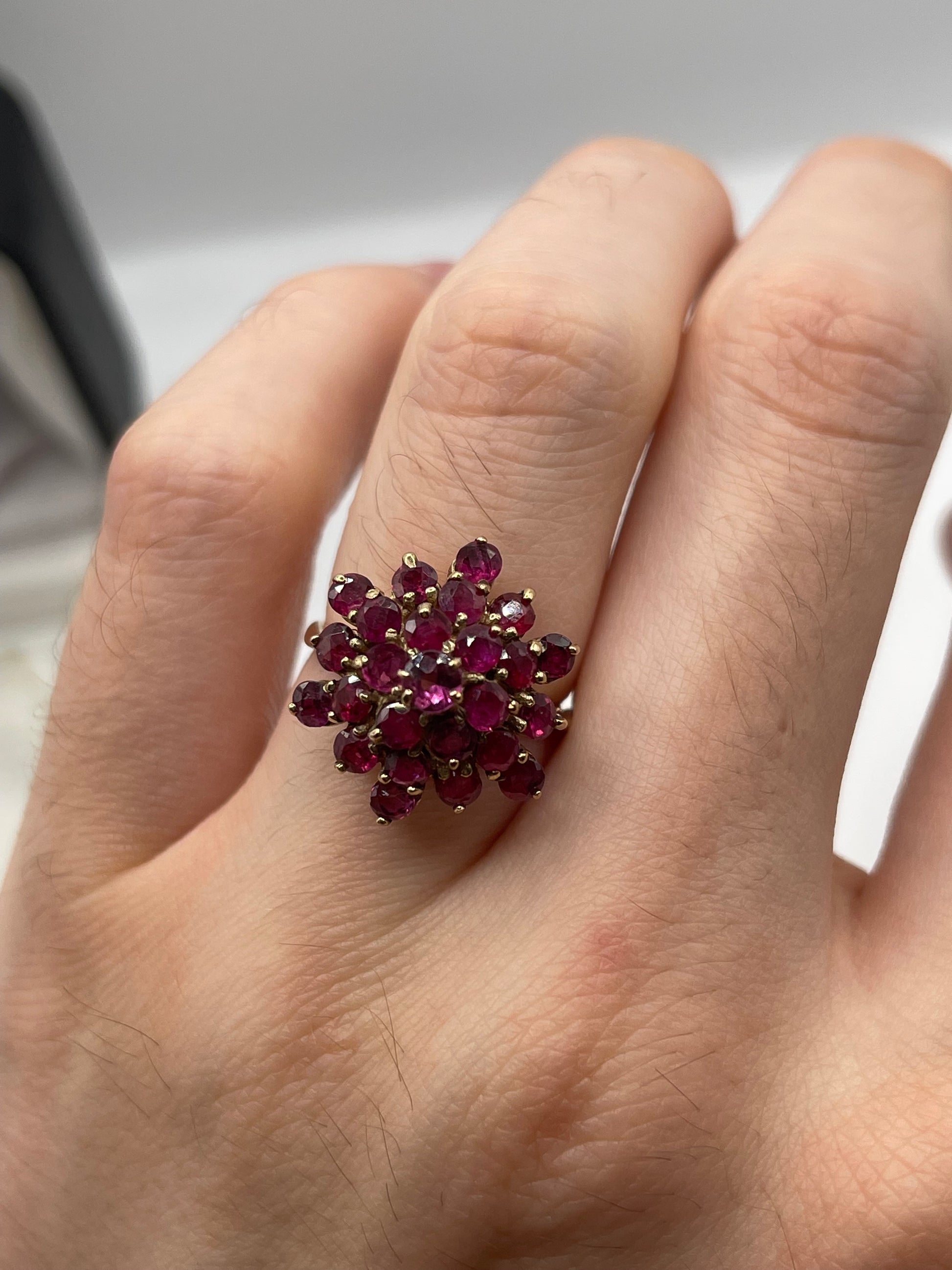 9ct gold ruby cluster ring