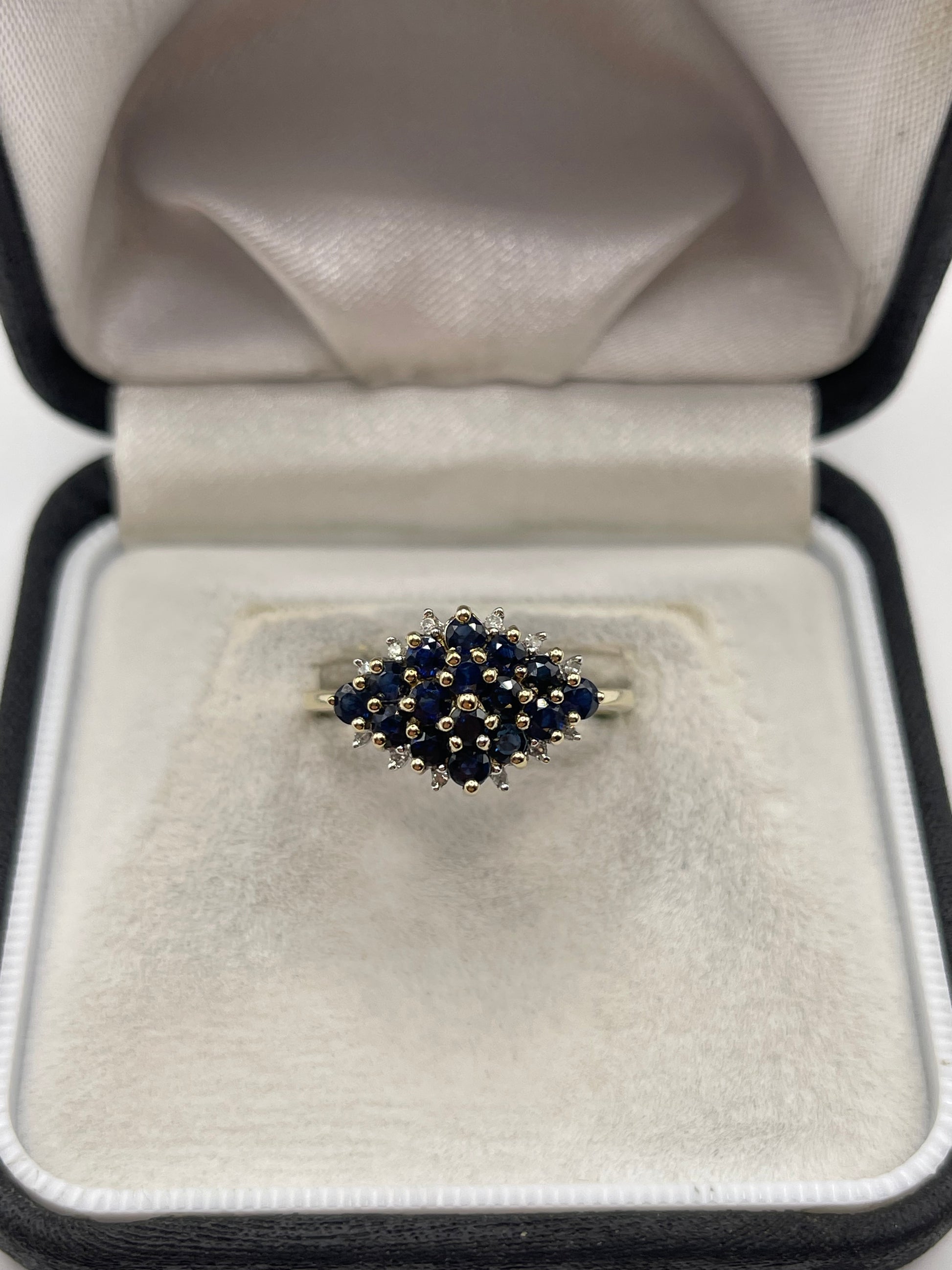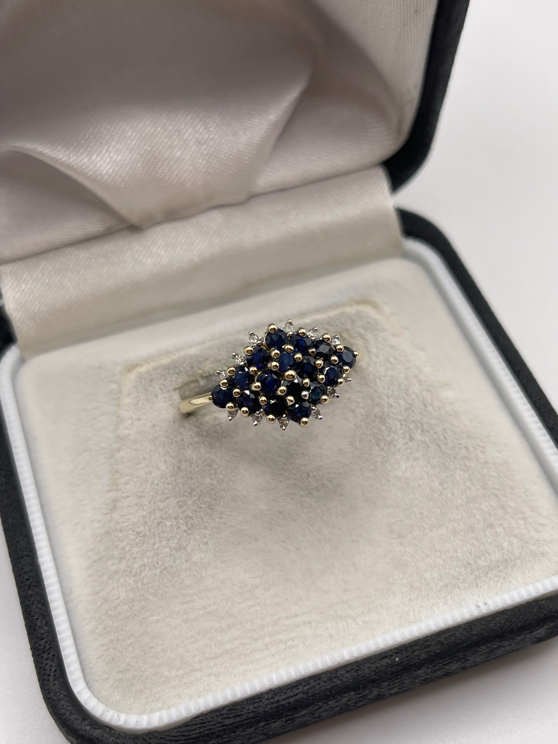 9ct gold sapphire and diamond cluster ring