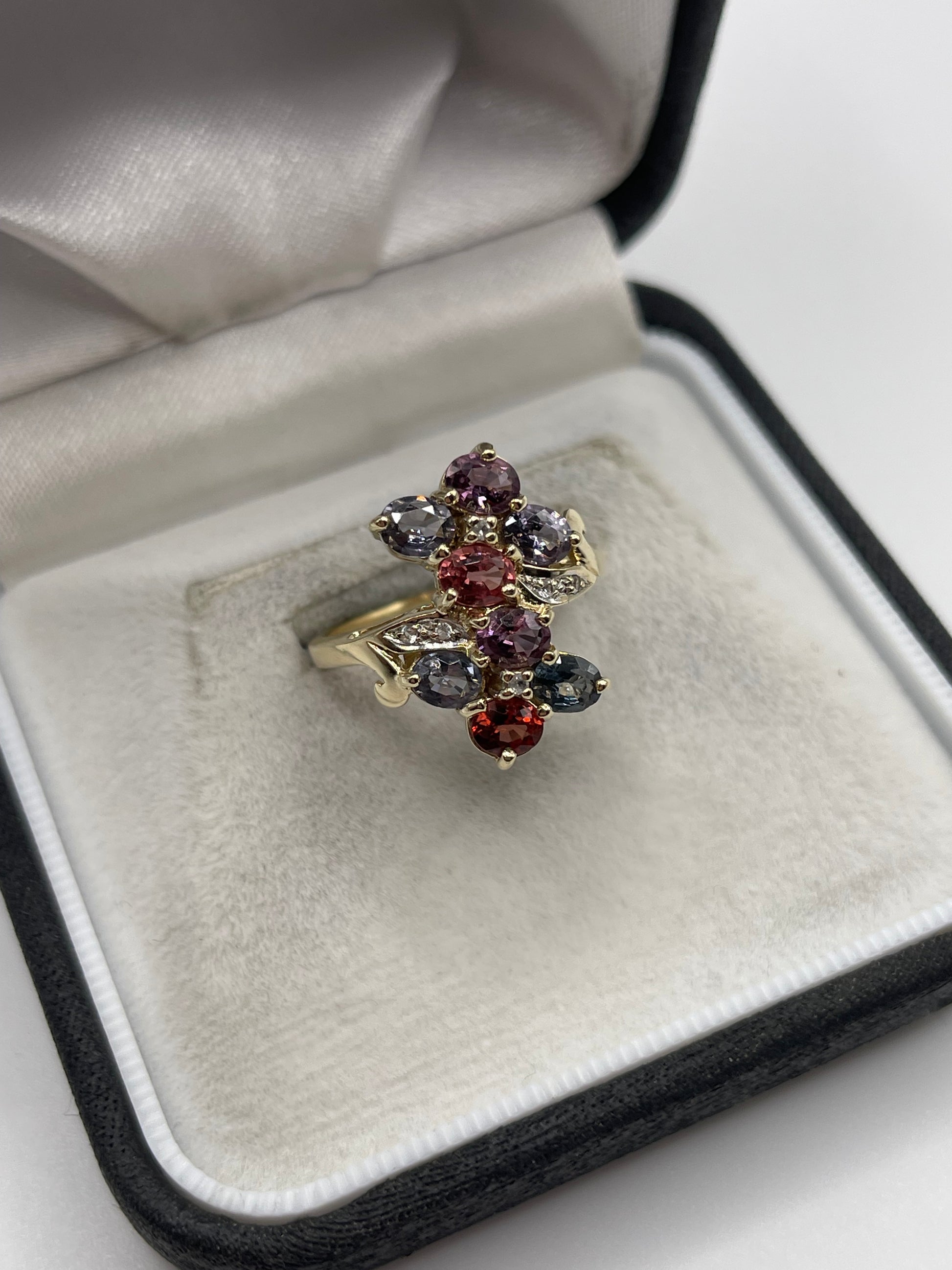 9ct gold spinel and zircon ring