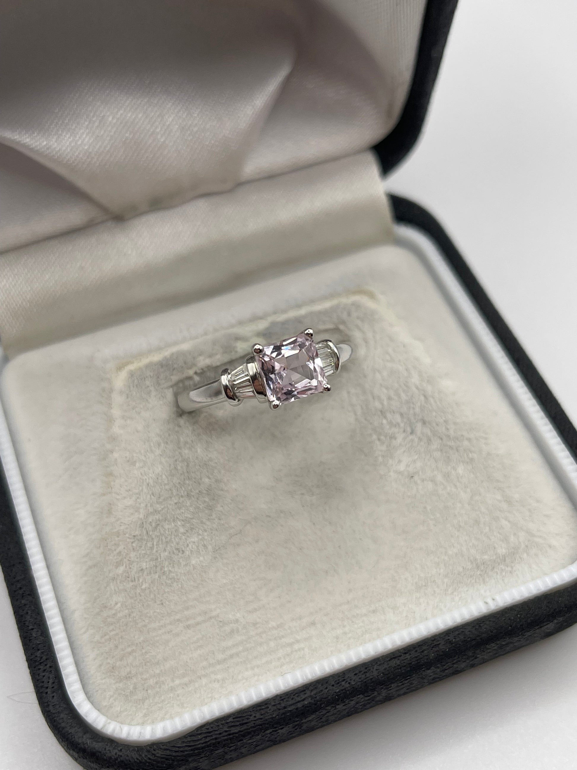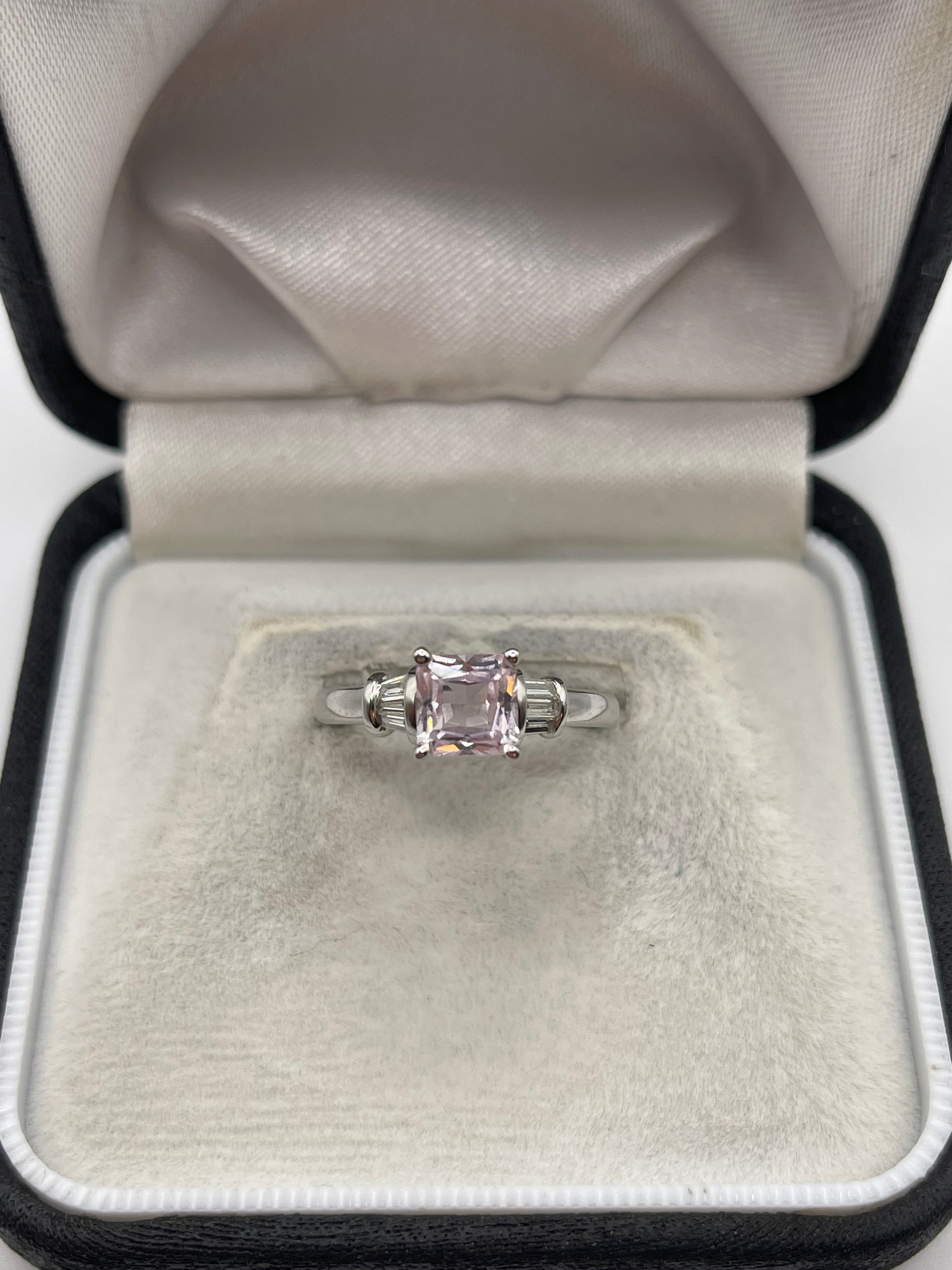 9ct white gold kunzite and diamond ring