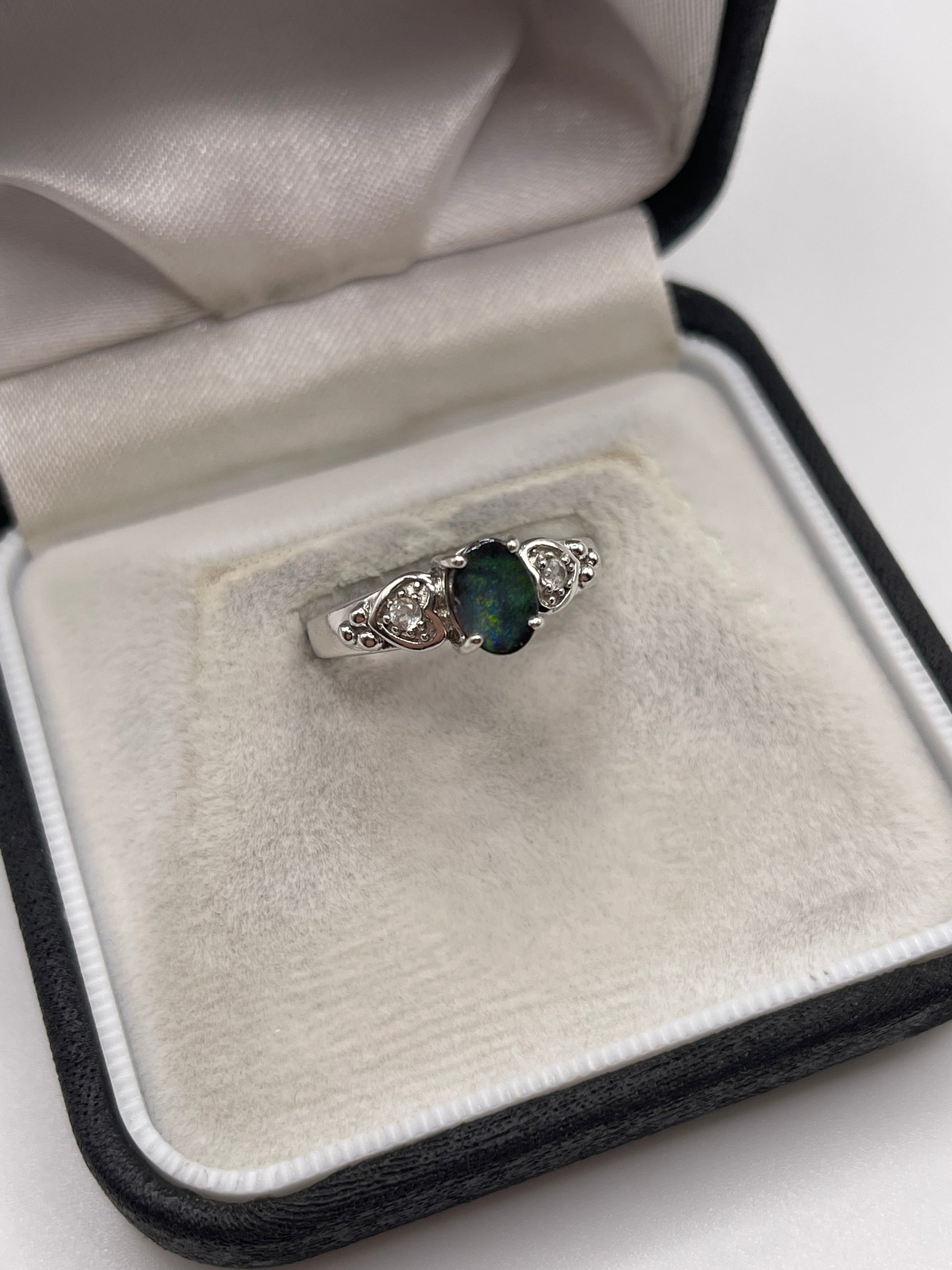 9ct white gold opal and zircon ring