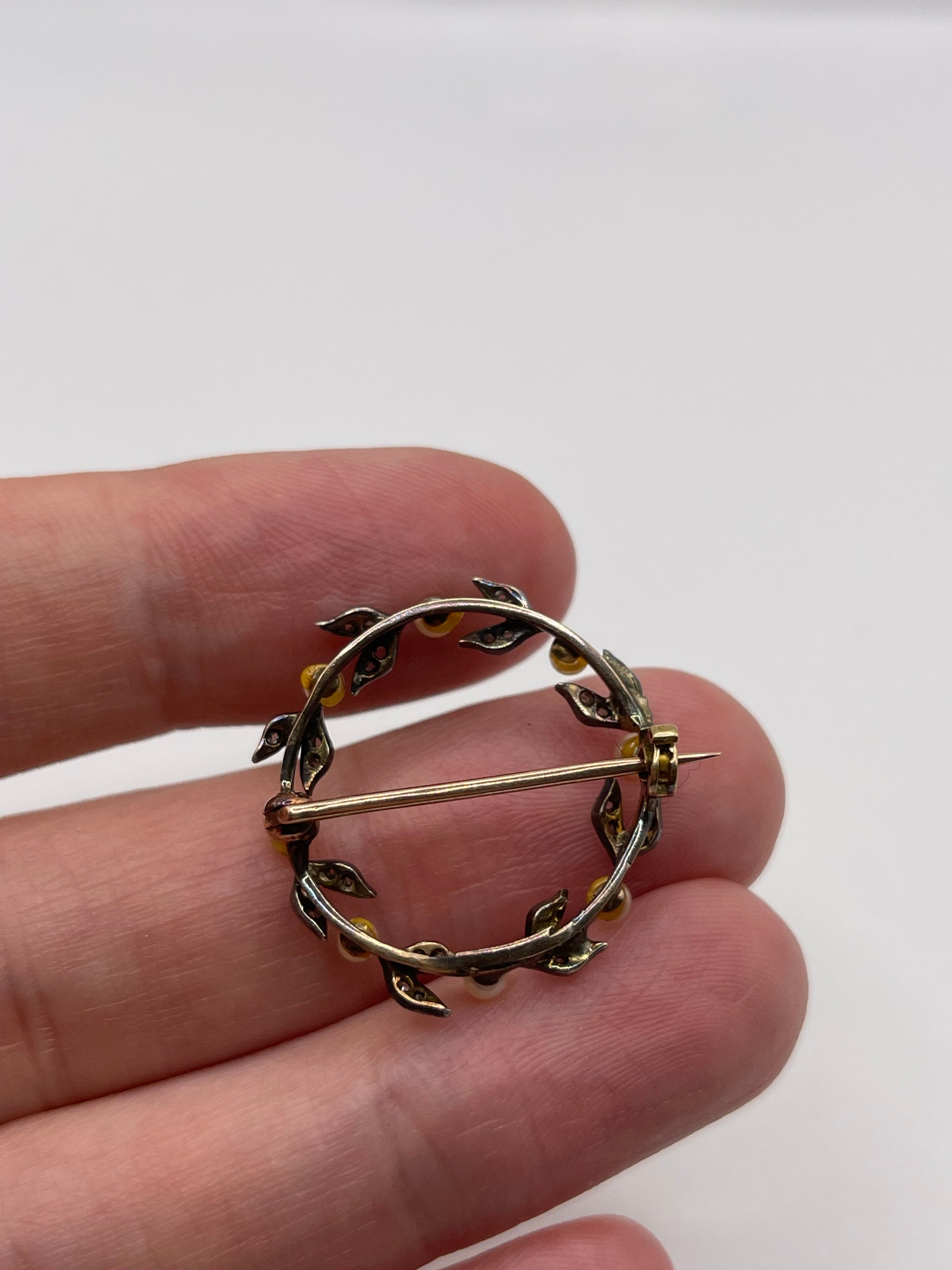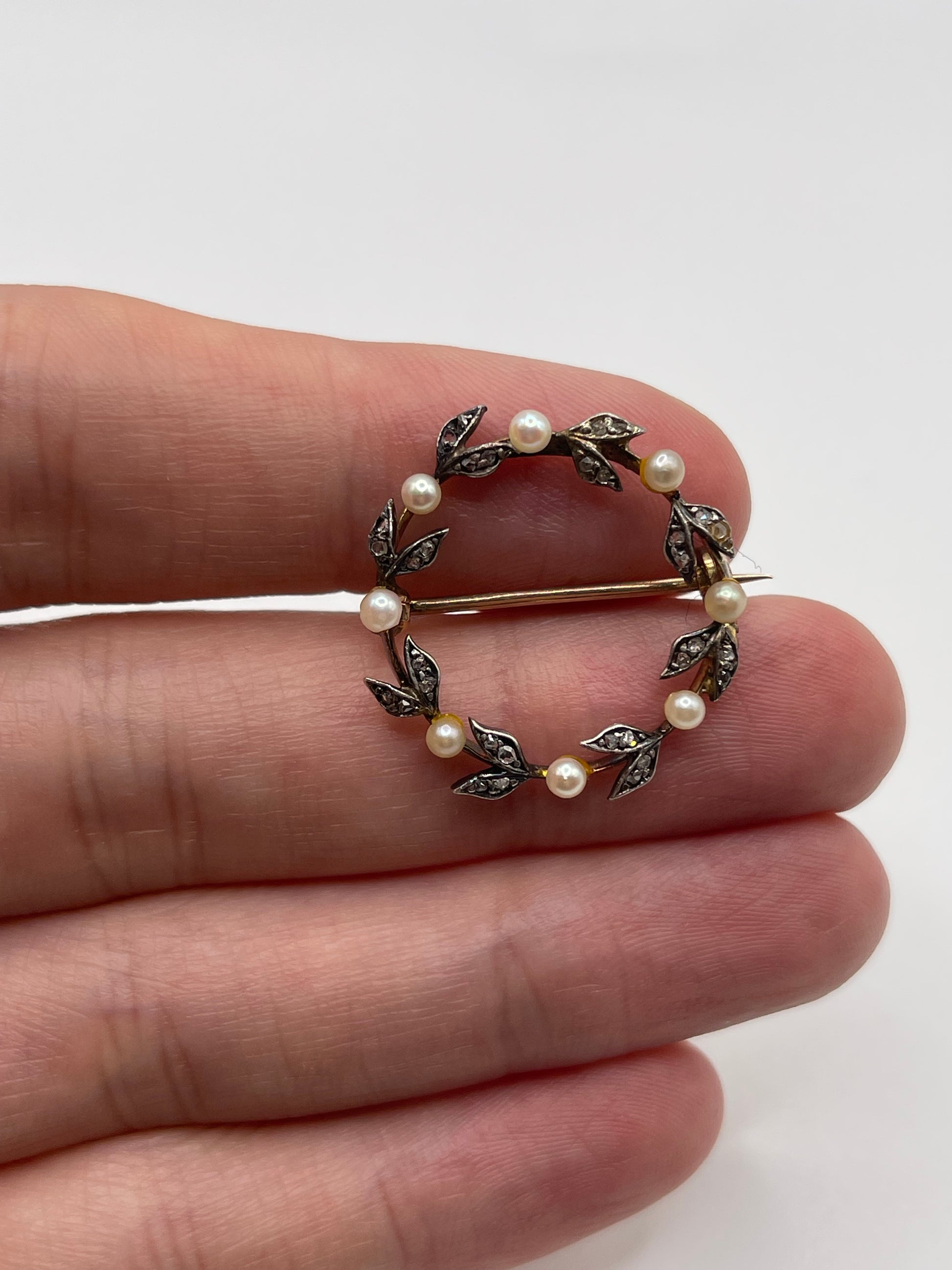 Antique 9ct gold / silver pearl and diamond brooch